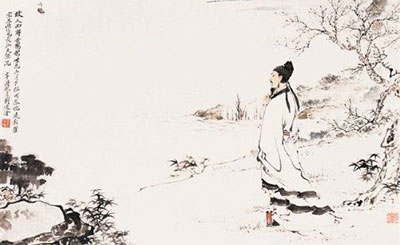 李白的《峨眉山月歌》,“峨眉山月半轮秋,影入平羌江水流。夜发清溪向三峡,思君不见下渝州。”诗意是:在一个秋高气爽、月色明朗的夜里,李白乘着小船,看着从峨眉山升起的月亮,从清溪顺流而下。月影映在江水之中,像一个好朋友一样,陪伴着他。但在从清溪到渝洲的途中,月亮总被两岸的高山挡住,使诗人思念不已。