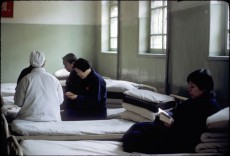 一名女性精神病患者正在看《红色娘子军》小人书