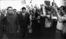 图为1924年,四名身穿泳衣、神态悠闲的美国女性在泳池里的浮桌上打麻将。