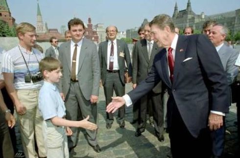 1988年5月,美国总统里根访问苏联,在莫斯科红场被拍下一张照片。在照片中有里根一行与一大一少两名男游客,里根正与少年游客握手。拍照的美国总统专职摄影师皮特声称,脖子上挂着相机,站在少年背后的男子正是当时苏联国家安全委员会(克格勃)的要员、俄罗斯现任总统普京。