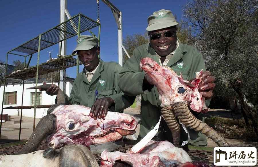 在纳米比亚首都温特和克城外的一家动物标本剥制工厂里,工人们忙碌着将客户送来的各种动物剥皮后填充,制成栩栩如生的动物标本,大象、猎豹、羚羊,甚至是狮子和鳄鱼,无所不有。虽然制作费用高昂,制作过程更是血腥残忍,但有钱的外国猎人还是纷至沓来。