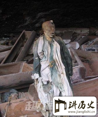导读:棺葬式是一种处置死者尸骨的特殊方式,在我国主要分布于古代南方少数民族地区。对这种富有深厚文化涵容的悬棺葬式,存在着许多令今人无法解释的困惑之处。比如,远古时代的人们到底是用什么办法把装有尸体和随葬物品、重达数百公斤的棺木送进高高的崖洞里去的,就是一个令人“难捉摸”的问题。下面我们来通过崖葬悬棺中的惊悚干尸揭秘悬棺的悬法和产生的历史过程: